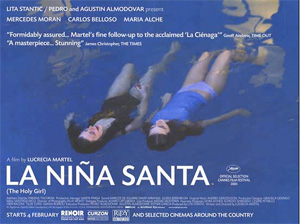 Much of the most interesting cinema today is coming from Spain and Latin America, and we're seeing again the transatlantic exchanges that took place in the first half of the twentieth century when Brazilian Alberto Cavalcanti came over to enliven the European cinema and Spaniard Luis Buñuel left France and settled in Mexico. Pedro Almodóvar and his brother, Agustín, are the executive producers of La Niña Santa (The Holy Girl), the second feature film by Argentinian Lucrecia Martel, which shows the strong influence of both Almodóvar and Buñuel. The setting, like that of her first film, La Ciénaga (which I've yet to see but have heard good things of), is a town in northern Argentina, and much of the action is seen through the eyes of the brooding 16-year-old Amalia (María Alche).