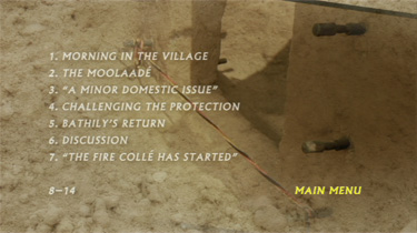 Where New Yorker improves is the addition of a second disc (single-layered) of extras to compliment those, duplicated on the AE, found on the first disc. On disc 2 there is a kind of "Making of" featurette running almost 25 minutes - a solid extras along with an insightful Sembene interview on disc 1 for about the same length of time. There is some African premier footage from 2004 in Burkina Faso. Three short actresses interviews (Maïmouna Hélèn Diarra, Lala Drabo, and Aminata Dao) running 10 minutes in total. Some haunting discussions on Female Genital Mutilation and even a competent 16-page liner notes booklet (interview with Sembene by Professor Samba Gadjigo of Mount Holyoke College etc.). Good job with the supplements NY'er - now let's just get that 'combing issue' fixed and you'll be sitting pretty. Certainly, this is a film that demands an audience and I appreciate NY'er bringing it to region one- locked audiences. Dependant on the system that you watch it on many may fully enjoy the New Yorker package. At the writing of this comparison the Artificial Eye is about 50% cheaper. ***