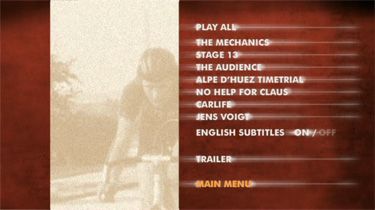 all things aside, this is a great looking transfer. The sound is multi language - Danish, English, French, Italian, German - and quality depends on what type of microphone was used and if its a recording from a radio and so forth. Some of the dialogue is hard to hear, but everything is subtitled. As additional material, we are offered a look behind the scenes. We get to see the mechanics preparing the bikes, audiences setting up their location, how life is living in a car, and a portrain of Voight. Good supplements, but nothing more than footnotes really. What sadly is missing is an audio commentary by Gislason, preferable with Riis. This is a film that almost screams for having its director talking about method, style and production. |