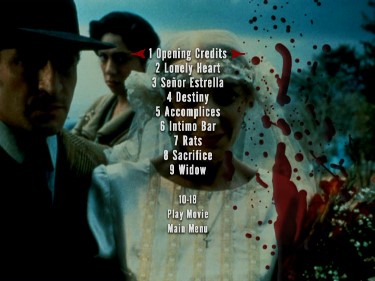 Anamorphic but not progressively transferred (see 'combing' in last capture) this Home Vision Entertainment DVD has a slim black border around the frame edge limiting horizontal resolution. Aside from those flaws the image does not look fatally poor - in fact in tube viewing it is very acceptable. The film itself is quite disturbing with its true-life focus on misguided passions and the corrupting results. Ripstein uses dark humor at times and the film is quite worth a viewing if you are prepared for the plot lines. A riveting drama from a gifted Mexican director. |