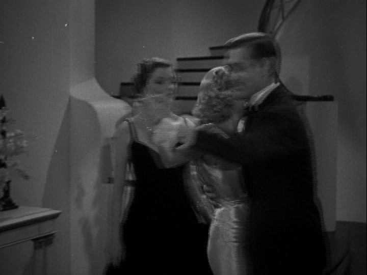 I suspect that this may be the weakest DVD transfer I can recall from Warner in quite some time. The image is very soft, dark and filled with damage marks as both blemishes and light scratches. Contrast is blended throughout and although we don't claim to be total experts in the DVD transfer process - this DVD exhibits 'combing' or 'trailing' (see last capture) which indicates that it was not wholly taken from HD (in a case where the film is older or there is no HD master - one is usually created and the digital transfer is taken from that). Now this may have been what is referred to as the alchemist process where only some of the transfer suffers from 'combing'. I can't say for sure, but I'll assume the very poor state of the master is some indication on why it differs from most all other Warner releases that I have ever seen. I am still discovering information about this process and will post any findings here - but suffice to say this DVD image is very poor even beyond Warner's usual high standards. I am not so much blaming Warner, as I feel confident that they do the best that they can with what they have, but viewers should be warned what to expect. Two vintage shorts round out the supplements and although I anticipated a better image on the feature - it's is still quite watchable. The film is a delight - I just love Myrna Loy and it's a shame that Jimmy Stewart was underused as Harlow's love interest - an extension of his part could have added a nice touch to the already wonderful film. |