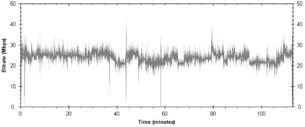 NOTE: The Vertical axis represents the bits transferred per second. The Horizontal is the time in minutes. |