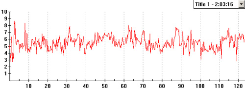 NOTE: The Vertical axis represents the bits transferred per second. The Horizontal is the time in minutes. |