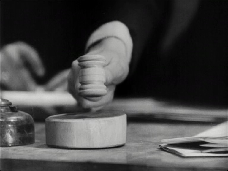 'voice-over' (simultaneously recorded off-camera by actress Joan Barry). |