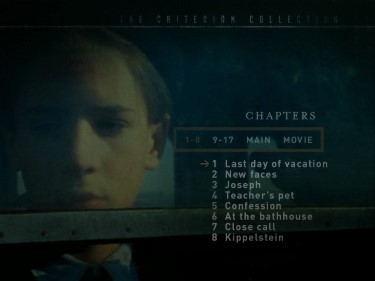 NOTE: The below Blu-ray captures were taken directly from the Blu-ray disc. ADDITION: Criterion Region 'A' Blu-ray: February 2011: Criterion's 1080P transfer looks very strong - there is some nice grain visible in the 1.66:1 framed image - it advances beyond the SD with more texture, a higher level of detail and colors - like flesh tones - seems more accurate. It is almost flawless excepting for some minor, almost imperceptible noise. It is dual-layered with a high bitrate and easily offers the best home theater presentation of this important classic.Audio remains faithfully mono but now in a lossless linear PCM track. There are optional English subtitles in a tighter, less bold font than the DVd and the disc is region 'A' - coded. Supplements mimic the individual release with a 1/2 hour video interview, in 1080i, with Louis Malle biographer Pierre Billard - author of Louis Malle: Le Rebel Solitaire - recorded in 2005 for the Criterion Collection. He discusses the rebellious spirit behind Malle's most controversial films. There is an interview (13:34 in 1080i) with actress Candice Bergen, Malle’s wife for 15 years - until his death in 1995. Joseph: A Character Study, a profile of the provocative figure from Au revoir les enfants, created by filmmaker Guy Magen in 2005 (5:22 in 1080i). In Au Revoir Les Enfants, the boys and their teachers attend a screening of The Immigrant, Charlie Chaplin’s 1917 short comedy. Made in 1917, this two-reeler feature Chaplin's Little Tramp is an immigrant on a ship sailing for the United States. Director Louis Malle chose this particular film because 'it was an evocation of freedom for those Jewish children when they see the Statue of Liberty, America being the promised land." It runs here for 25:14 in 1080i. Included are audio excerpts from a 1988 AFI interview with Malle (53:10) as part of the Harold Lloyd Masters Seminars. There are the original theatrical trailer (2:00 in 1080i) and teaser (:45 in 1080i) plus a 24-page booklet featuring essays by film critic Philip Kemp and historian Francis J. Murphy. We have another amazing film - in a pristine, state-of-the-art, transfer with stacked extra features. It is especially recommended for those who have not yet seen the film - to those individuals it is recommended s an essential. ***