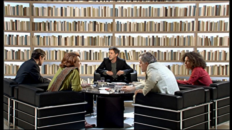 NOTE: This is a scene that is shot through a lesser video camera lens to give the impression of a recorded talk show.