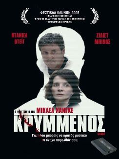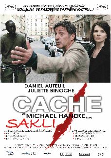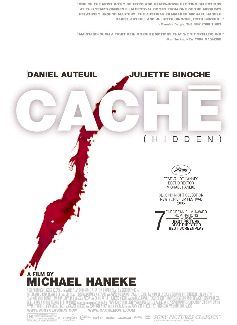 A television presenter, Georges, starts to receive anonymous packages containing videos of himself with his family that have been secretly filmed from the street along with a number of violently disturbing sketches. As the content becomes more personal and he begins to suspect that he knows the perpetrator. However the police refuse to help as no direct violence has actually been made. George decides to take the matter into his own hands and discovers something that has disturbing results. **** A master of the icy yet visceral shock, Austrian-born Michael Haneke often turns his formidably unpleasant imagination to the movie equivalent of a cruel prank. But in CACHE ("Hidden"), the subject matter is worthy of his nastiness: What first appears to be a subtly sadistic campaign of terror against one annoyingly smug, bourgeois French intellectual proves rooted in global discontents, national character and personal responsibility. Middle-age TV personality Georges (Daniel Auteuil), host of a literary roundtable program, lives with his wife, Anne (Juliette Binoche), and their 12-year-old (Lester Makedonsky) in a handsome apartment filled with books, art and cultured knickknacks. Cocooned in a world of brittle conversation and middle-class comfort, they're deeply unsettled when a videotape appears outside their front door, one that consists of a lengthy surveillance shot of their building. If it's a joke, neither Anne nor Georges can figure out the punch line. If it's a threat, they're both baffled by its nature and origin. A second cassette arrives wrapped in a childish drawing of a blood-spattered face, followed by more tapes and more bloody scrawls. The police say they can do nothing. But even before the arrival of a tape showing the country home where Georges grew up and his aging mother (Annie Girardot) still lives, it seems increasingly clear that the veiled message is directed at Georges. His peevish protestations of ignorance ring hollow, and during a visit with his mother, he alludes to "Majid" and some long-ago unpleasantness that they circumvent with practiced deference. Yet another tape, which prowls the shabby hallway of a low-income building before coming to rest on a battered apartment door, leads Georges to a charged confrontation with Majid (Maurice Benichou), an Algerian man his own age whom life has clearly treated less kindly. But Majid denies knowing anything about the matter, and Georges' decision to keep their encounter secret has serious repercussions at home when the stalker delivers a new tape showing their lengthy conversation; her husband's secretiveness has made her look at him with newly ungenerous eyes. Haneke's trademark perversity guarantees that while the drama between George and Majid comes to a brutal conclusion, the persecution doesn't. Excerpt from Maitland McDonagh's review at TV Guide located HERE |