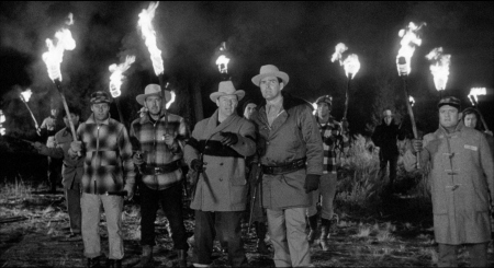 Updating a horror staple to the Atomic Age, this moody chiller stars Steven Ritch (Murder by Contract) as an auto-accident survivor who’s used by two scientists as a subject for their experiments to create a vaccine for nuclear fall-out. Unfortunately, it has a rather hairy side effect. Another solid effort from director Fred F. Sears, with Don Megowan (The Creature Walks Among Us), Joyce Holden (Terror From The Year 5000) and Harry Lauter (It Came From Beneath The Sea), as well as some beautiful locations at Big Bear Lake. *** The arrival in a small mountain town of a dissheveled stranger launches a series of murders committed by some sort of animal. As the town doctor and his daughter attempt to help the stranger, the sheriff investigates the murders; and they uncover a sinister experiment involving two rogue scientists, a car accident victim, his wife and children, and a serum that causes a man to turn into a ravaging werewolf. |