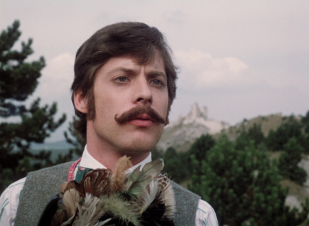 A unique and almost indescribable mix of Gothic fiction, steampunk gadgetry (designed by Czech animation wizard Jan Švankmajer), slapstick comedy and romantic opera, director Oldřich Lipský’s wonderfully bonkers delight has elements of THE FEARLESS VAMPIRE KILLERS, Terry Gilliam, Mel Brooks, and "The Benny Hill Show." Based on an 1892 Jules Verne novel The Carpathian Castle (which partially inspired Bram Stoker to write Dracula), the film follows Count Teleke of Tölökö (Michal Dočolomanský) on the trail of the count’s lost lover, opera singer Salsa Verde (Evelyna Steimarová) – only to discover she’s been abducted by fiendish Baron Gorc of Gorceny (Miloš Kopecký), whose castle home is filled with the bizarre inventions of mad scientist Orfanik (Rudolf Hrušínský). Littered with puns, sight gags and non-sequiturs – "Later, in Werewolfston", an invented dialect, a detached golden ear for eavesdropping, a staff topped by an enormous TV eyeball – MYSTERIOUS CASTLE was the third fantastical film from the team of director Lipský and writer Jiří Brdečka after their much-loved musical western spoof LEMONADE JOE (1966) and their detective/horror satire ADELA HAS NOT HAD SUPPER YET (1977), both major Czech cult hits. (Note that actor Miloš Kopecký and Jiří Brdečka worked on the supernatural anthology PRAGUE NIGHTS, also released by the Národní filmový archív, Deaf Crocodile, and Comeback Company.) *** In 1897, in a castle near the town of Werewolfville in the Carpithians, a slightly deranged Professor Orfanik experiments with his new inventions which include, even at this early date, television and a film camera. He is also an obsessed opera fan, keeps the body of his favorite diva preserved in a crypt in the castle. In order to keep away nosy visitors, the baron's mad-scientist assistant, invents all sorts of spooky phenomena in order to give the castle a creepy reputation. |