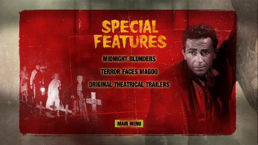 Extras are kinda cool - they give us Sinister Savages: Chapter 2 of Katzman's serial Mysterious Island which fits perfectly within the confines of the boxset collection. I enjoyed seeing a Mr. Magoo cartoon entitled Terror Faces Mr. Magoo. I haven't seen one in years. There is also a terrible comedy short called Midnight Blunders from 1936 (directed by Del Lord of 3 Stooges fame) - I wasn't too keen on this. Plus there are trailers for all 4 features and some other sci-fi classics. Excellent - a commentary would never be warranted and these supplements had some relevance and fit snugly into the collection's kitschy appeal!