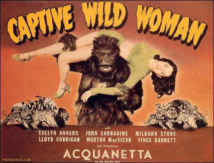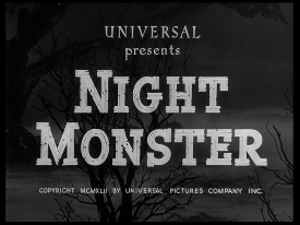 The Black Cat (1941) Directed by: Albert S. Rogell Release date: May 2nd, 1941 Comments: Undistinguished comedy-chiller involving the familiar routine of old dark house, reading of a will, assorted murders. Nothing to do with Poe's story except for some business involving cats, it's worth watching mainly for the admirable Stanley Cortez camerawork. Alan Ladd has a small role as Rathbone's son. Excerpt from TimeOut Film Guide located HERE Man Made Monster (1941) Directed by: George Waggner Release date: March 28th, 1941 Comments: While Man-Made Monster is not one of the all-time great horror films like many of its thirties and forties Universal Pictures celluloid brethren, it is not without certain merits; in particular, it can be viewed historically as the proving ground for one of Universal's undisputed classics, The Wolf Man. Both filmed in 1941, Man-Made Monster first teamed many of the people who would later collaborate on The Wolf Man. Star Lon Chaney Jr., and director George Waggner are well known to have gone on to make the furry opus, but many of the other talents that reunited for the Wolf Man included some of Universal's stable of technicians and artists like special effects wizard John P. Fulton (Frankenstein, The Invisible Man, The Ten Commandments), makeup magician Jack Pierce (Frankenstein, The Mummy), musical director Hans Salter (The Mummy's Hand, Ghost of Frankenstein) and costumer Vera West (The Man Who Laughs, Son of Frankenstein). Excerpt from Jason Jones review at Classic Horror located HERE Horror Island (1941) Directed by: George Waggner Release date: March 28th, 1941 Comments: A small-time entrepreneur takes advantage of a fake treasure map he has acquired to stage a treasure-making scheme to an island with an old castle that he has rigged up to be haunted. However, he finds himself being stalked by a killer known as "The Phantom," and the treasure-seekers find themselves being knocked off one by one. Excerpt from Dave Sindelar review at Sc-fi.org located HERE Night Monster (1942) Directed by: Ford Beebe Release date: October 20th, 1942 Comments: ...as for the movie itself, it's a minor Universal horror film, to be sure, but it's probably my favorite of their lesser ones. There's very little padding or wasted space, and it has the courage of its convictions in that it isn't simply a mystery disguised as a horror film (which one might suspect, given the fact that the movie is sort of a variation of the "Old Dark House" type of movie). The first time I saw this movie was in unusual circumstances; my local Creature Feature had mixed the final reels of this movie with the opening reels of THE MUMMY'S HAND, and I found myself suddenly thrown into another plot halfway through the movie. Nevertheless, at least one scene remained stuck indelibly in my memory; this is the scene where we learn the truth about the paralysis suffered by the patriarch of the house. Also, the clever use of sound is memorable; the croaking frogs in the vicinity become quiet whenever the murderer is around. The movie uses this devise sparingly, but very effectively. This was one movie I hadn't seen in years until I saw it for this series of movies. It was nice to see how well it held up. Excerpt from Dave Sindelar review at Sci-fi.org located HERE Captive Wild Woman (1943) Directed by: Edward Dmytryk Release date: June 4th, 1943 Comments: A 61-minute Universal programmer from 1943, directed by Edward Dmytryk, in which John Carradine turns an orangutan into a beautiful woman (Acquanetta) who goes nuts because of unrequited love and kills a lot of men. This was popular enough to spawn two sequels, Jungle Woman and Jungle Captive. Excerpt from Jonathan Rosenbaum's review at The Chicago Reader located HERE