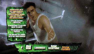 Extras: Duplicated from the 50th Anniversary Edition SD - we are given nothing new - but still I'm not complaining about the effort put into the supplements. Firstly, we have a super entertaining audio commentary by Ray Harryhausen, Dennis Muren, Phil Tippett, and Arnold Kunert, then a nostalgic featurette: "Remembering 20 Million Miles to Earth" (27:05) with Harryhausen giving us a lot of detail of some of his other work as well as 20 Million... . There is a brief, 10 minute, featurette on the colorization process, a Tim Burton interview with Ray Harryhausen for almost a half hour and a delightful interview with actress Joan Taylor (about 20 minutes). There is some original ad artwork, another featurette - this time on Advertising for 20 Million Miles to Earth and Other B-movies (about 20 minutes and quite cool), a final featurette: "David Schecter: Movie Music's Unsung Hero" (running 22 minutes) and a video photo gallery.