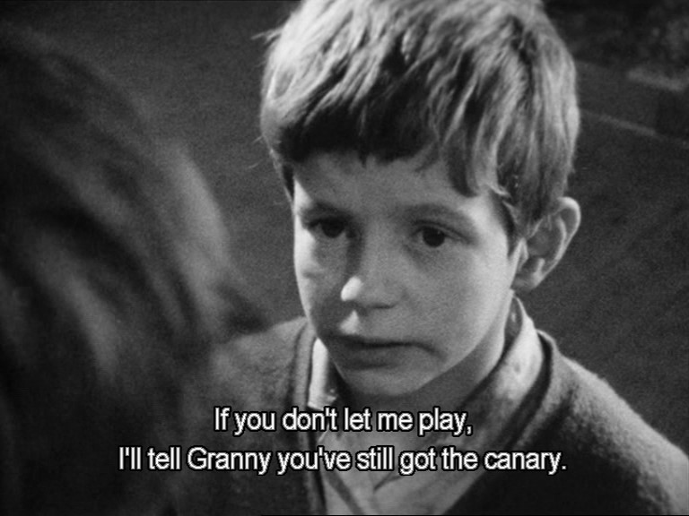 NOTE: The below Blu-ray captures were ripped directly from the Blu-ray disc. ADDITION: BFI - Region FREE Blu-ray - August 09': This masterpiece trilogy, that received multiple award mention in your DVD of the Year 2008 Poll, is now available in region FREE Blu-ray. The disc is dual-layered taking up a whopping 48 Gig. As the original image quality appears - so the 1080P resolution improves it. We see more grain, especially with My Childhood, and superior detail - especially in My Ain Folk and My Way Home. There are times it looks absolutely stunning. Contrast is remarkable and the entire package's visuals are ever so impressive. These are now in theatrical running time - no PAL speedup. Audio has been given a lossless linear PCM upgrade with about 2000 Kbps - I can't see it sounding any better. The optional English subtitles remain. My Momitsu tells me this Blu-ray is Region FREE! The second PAL, single-layered, disc of extras is duplicated and discussed below but it won't play on region 'A'-locked Blu-ray machines. The same booklet is also included. This is a little over a year since the DVDs came out and I expect it was a transitional time to put on Blu-ray. This wasn't an attempt to gouge for double-dipping. BFI are putting out both format titles simultaneously now. Even if you own on DVD I strongly suggest the upgrade. Very highly recommended! *** ON THE DVD package: The first disc of this package has the three main features running between 45 and 68 minutes each. It is progressive and dual-layered. The second is single-layered and has the supplements. Both are coded for region 2 in the PAL standard. It is housed in a standard transparent keep case (see above image). At present these three Bill Douglas films are not sold separately and are only available in this Trilogy collection. The features can be played individually or one immediately following the next with a 'Play all' option. Each have original English audio with an option for English subtitles in a white font with black border (see samples below). The extras, also in English, also have optional subtitles.