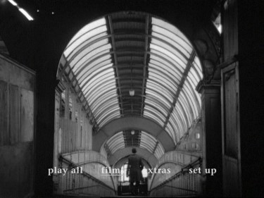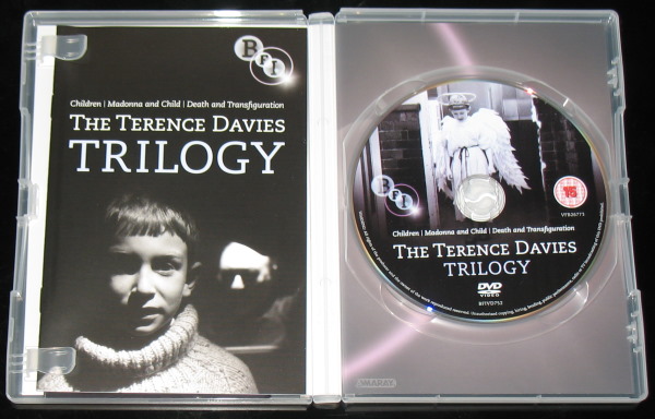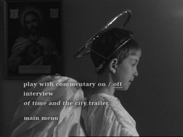 This is coded for region 2 in the PAL standard. It is housed in a standard transparent keep case (see above image). At present these three Terence Davies films are not sold separately and are only available in this Trilogy collection. The features can be played individually or one immediately following the next with a 'Play all' option. Each have original English audio with an option for English subtitles in a white font with black border (see samples below). The extras, including the commentaries, also in English, also have optional subtitles.