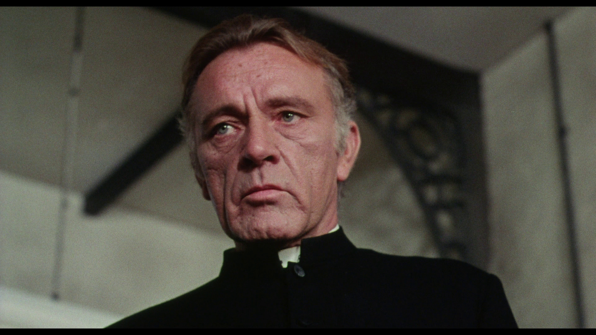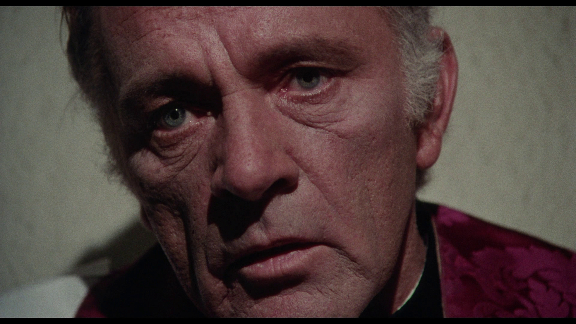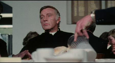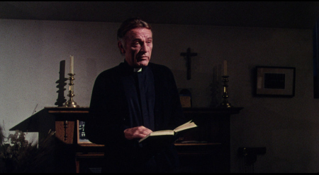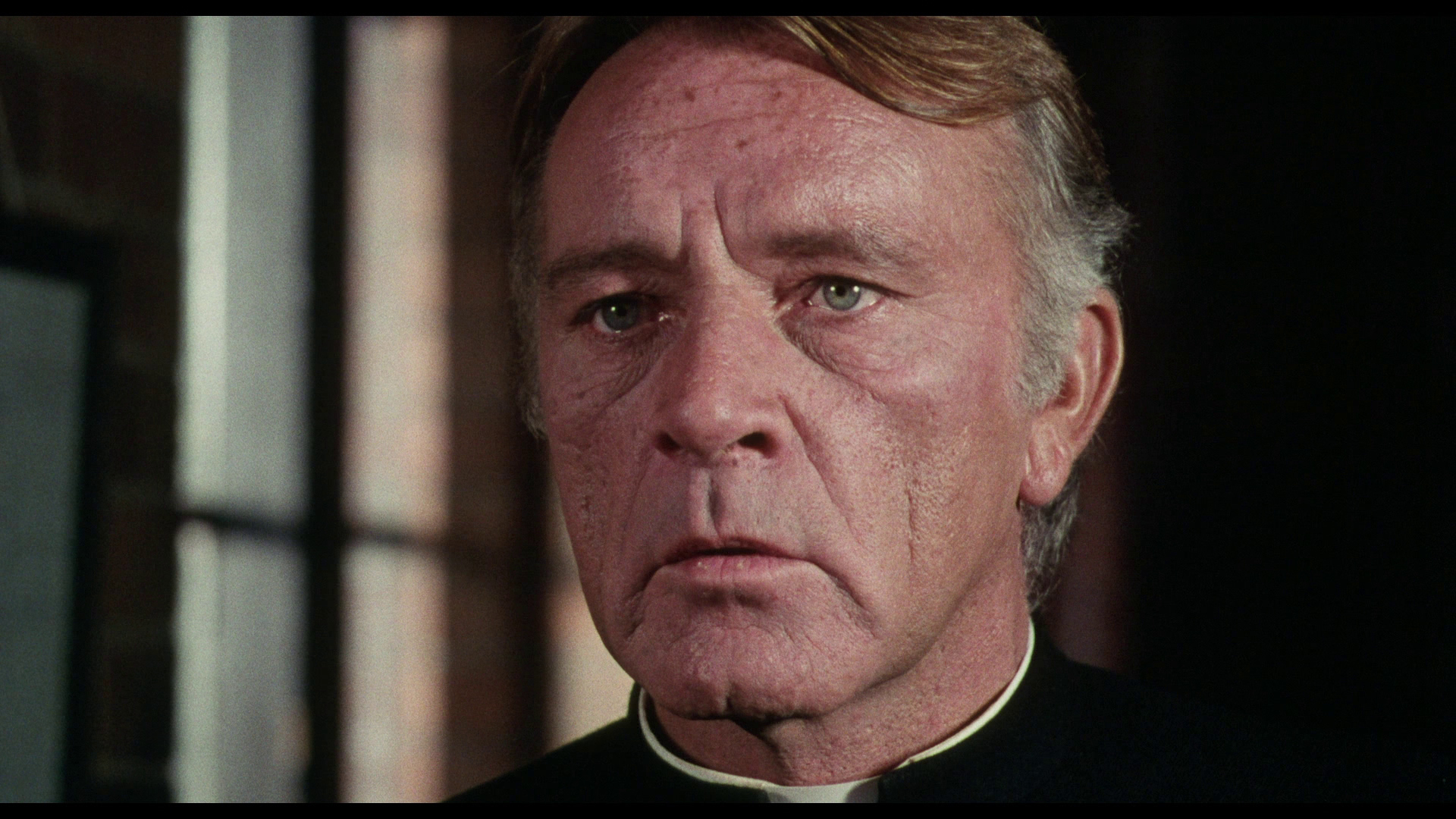 NOTE: The below Blu-ray captures were taken directly from the Blu-ray disc.ADDITION: (November 2025) 88 Films - Region 'B' - Blu-ray: 88 Films have also transferred "Absolution" to Blu-ray. It also presents both the theatrical cut (95:30) and the 2018 director's cut (85:35) in a high-definition 1080P in the original 1.85:1 aspect ratio, sourced from the same 2K restoration used by Indicator and Kino Lorber, delivering a solid upgrade over prior soft and faded VHS/DVD releases with enhanced textures in faces, hair, vestments, and school interiors like stone, woodwork, and stucco walls, though bright exteriors under opening titles appear somewhat soft. There is occasional depth. Colors are natural with agreeable skin tones and greenery in outdoor scenes, grain is fine and filmic, contrast is wide with good delineation in darker sequences, and issues are minimal with rare flare and damage confined to end credits. The visual style of Absolution (1978), lensed by cinematographer John Coquillon (1978's The Thirty-Nine Steps, The Changeling, Straw Dogs, Cross of Iron, The Wilby Conspiracy) emphasizes a deceptive realism that aligns with the era's British cinema, employing muted, autumnal tones to depict England as a colorless, depressive landscape far removed from the vibrant psychedelia of the 1960s. Coquillon's approach creates environments that feel inwardly constricted, heightening the psychological tension as characters navigate shadowy interiors and dimly lit corridors that evoke repression and moral decay. The overall look is elegantly shot, often described as one of the best-crafted films of the 1970s, with a deliberate, slow-building rhythm that mirrors the characters' internal unraveling, transitioning from an initial black comedy vibe - marked by impish expressions and playful misdirection - to a darker, more ominous thriller atmosphere. The cinematography's effectiveness lies in its subtlety, using the rural English setting to foster a sense of stagnation and dread, where the vast outdoors ironically intensifies the characters' entrapment. NOTE: We have added 48 more large resolution Blu-ray captures (in lossless PNG format) for DVDBeaver Patrons HERE. 88 Films provides a linear PCM 2.0 dual-mono track(24-bit) for the theatrical cut, offering depth in elements like banjo strumming and subtle scoring - prolific Stanley Myers (Take a Girl Like You, The Wilby Conspiracy, Eureka, Cimino's The Deer Hunter, Roeg's Insignificance, Harold Becker's The Boost, Pete Walker House of Mortal Sin and Frightmare, etc.) - with clear dialogue and optional English subtitles though the director's cut downgrades to lossy Dolby without subtitles, marking a step back from Indicator's lossless DTS-HD Master for both versions with SDH support, where dialogue is crystal clear, hiss/pops are minimal, and the creepy score sounds strong even in mono. Myers, renowned for works like "Cavatina" from The Deer Hunter, crafts a main theme infused with Irish/Scottish banjo twiddling that playfully references the on-screen music performed by Billy Connolly's drifter character Blakey, whose nimble banjo plucking introduces a bohemian, rebellious contrast to the school's rigid silence. Sound design complements this by emphasizing ambient isolation - rustling woods, echoing confessions, and the stark quiet of the chapel - creating a haunting, foreboding atmosphere that aligns with the visual claustrophobia. There are optional English subtitles on the theatrical cut and the Blu-ray is Region 'B'-locked. The 88 Films disc includes both film versions, a new audio commentary by film historians Kim Newman (The Definitive Guide to Horror Movies) and Sean Hogan (England's Screaming) discussing screenplay origins, Shaffer's works, and thematic parallels like the lack of likable characters, a ported commentary found on the Indicator (as all the rest of the supplements) by Kevin Lyons (The Encyclopedia of Fantastic Film and Television) covering production history, casting, and storytelling devices, interviews "The Devil to Pay" - a dozen minutes - with director Anthony Page on script rewrites and working with Burton, "Them and Us" with actor Dominic Guard on his experiences and co-stars, an image gallery, and the original trailer, but omits Indicator's additional costume designer Anne Gainsford 9 minute interview and 40-page booklet. Absolution stars Richard Burton (The Taming of the Shrew, Raid on Rommel, Bluebeard, The Spy Who Came in from the Cold, Anne of the Thousand Days, Equus, The Medusa Touch, Where Eagles Dare, The Night of the Iguana, Who's Afraid of Virginia Woolf, The Wild Geese, My Cousin Rachel, The Robe, Boom) in a commanding lead role as Father Goddard, a devout Catholic priest at an all-boys boarding school, alongside young actors Dominic Guard (Gandhi, The Watcher in the Woods, Picnic at Hanging Rock, The Go-Between) as the manipulative student Benjamin "Benjie" Stanfield, Dai Bradley (billed as David Bradley - Zulu Dawn, Kes) as the awkward Arthur Dyson, and Billy Connolly (The Boondock Saints, Columbo: The Return, X-Files I Want to Believe) in his screen debut as the free-spirited drifter Blakey. Set against the backdrop of a repressive religious institution, the narrative unfolds as a slow-burning exploration of deception, faith, and moral unraveling, blending elements of mystery, horror, and dark comedy. Produced by Elliott Kastner (North Sea Hijack, Saturn 3, 1978's The Big Sleep, 1975's Farewell, My Lovely, 11 Harrowhouse, The Long Goodbye, Fear Is the Key, X, Y & Zee) and Danny O'Donovan under Bulldog Productions, with cinematography by John Coquillon and a tense score by Stanley Myers, the film was shot on location at Ellesmere College in Shropshire and at Pinewood Studios. Though it premiered in the UK in 1978, legal issues delayed its U.S. release until 1988, four years after Burton's death, contributing to its status as an underseen gem of 1970s cinema. At its core, Absolution interrogates the sanctity