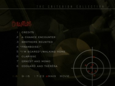 ADDITION: - Criterion - NTSC - November 2005: The first huge difference in these edition is the extensive cropping on the MK2 release - mostly on the two sides but on the top as well. The Criterion is much brighter and we can only surmise that the transfer, supervised by director of photography Raoul Coutard, is the most accurate in terms of intended appearance. The MK2 has both brightness boosting and de-saturation that leaves the image very thin. This makes the Criterion appear a little softer alongside. There are some visible artifacts in the MK2 that are more apparent also next to the Criterion. Frankly this is all quite contrary to what we have seen from Criterion in some of their past releases. As opposed to their usual slight de-saturation and darkness (often reds and/or blacks) boosting to bring up detail, they have gone the opposite route and allowed the image to have a softer glow... which is possibly more accurate. Also Criterion have been caught a number of times with cropping issues in the past, but since the use of their new quantization matrix (1st seen in PickPocket) this no longer seems to be an issue, but we will keep attentive in any case. This is actually very good news as it shows that Criterion appear to be improving - raising the bar another notch. In this DVD comparison the Criterion gives a far more film-like presentation. Although the MK2 has some decent extras - those supplements do not have English subtitles. There are some cross-over's with the Maria Dubois screen test (example) - I particularly got a lot out of the Kent Jones essay booklet that includes and interview with Truffaut. It is beautifully bound and a nice keepsake. Criterion's 2nd disc has some real value. We, of course, recommend the Criterion. *** The new