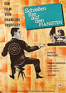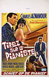 François Truffaut is drunk on the possibilities of cinema in this, his most playful, anarchic film. Part film noir, part comedy, part tragedy, Shoot the Piano Player relates the adventures of the mild-mannered piano player Charlie (Charles Aznavour, in a triumph of hangdog deadpan) as he stumbles into the criminal underworld and a whirlwind love affair. Loaded with gags, guns, clowns, and thugs, this razor-sharp homage to the American gangster film is pure nouvelle vague. *** What makes Truffaut's second feature such a delight is the almost tangible passion for the history of cinema, its language and conventions, and the artistic possibilities offered by their innovative adaptation and re-interpretation. But don't let the label of artiness put you off. Truffaut was thankfully not so stuffy as to forget that the best movies can be funny as well as clever. Witty dialogue and thoroughly inventive visual humor are equally important elements in the composition of the film's considerable charm. Charles Aznavour, as the eponymous pianist, is ideally suited as the alternately tragic and comic hero and coasts effortlessly through the sudden changes of mood. |