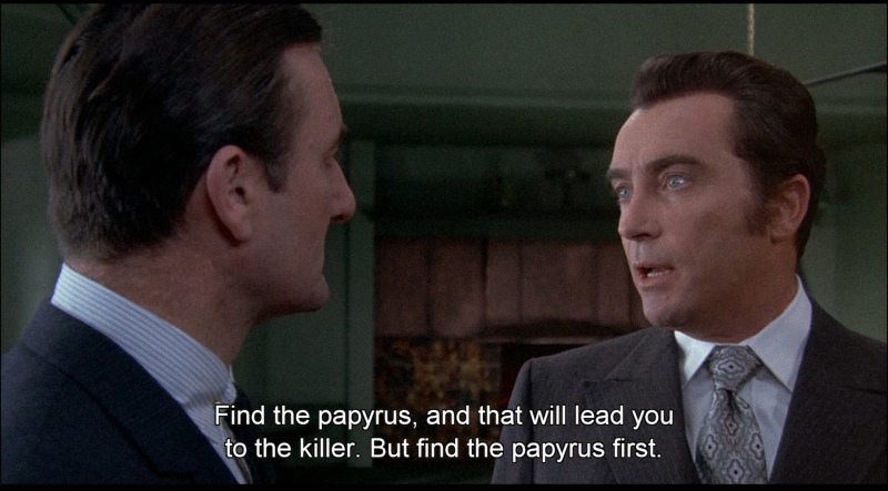 This sequel to the stylish 1971 melodrama The Abominable Dr. Phibes once more stars Vincent Price in the title role. Long believed dead, Phibes arises from a state of suspended animation, in search of the means to bring his deceased wife back to the land of the living. Phibes also wears a rubber mask to disguise his own horribly disfigured countenance. (The giveaway: he never moves his mouth when speaking, and eats by applying his fork to his neck!) With the aid of the enigmatic, never-speaking Vulnavia (Valli Kemp), Phibes follows an Egyptian expedition, seeking out an ancient elixir of life and killing everyone who gets in his way. In the original film, all of the doctor's grisly but ingenious murders were motivated, and all were linked by a Seven Deadly Plagues throughline. In the sequel, Phibes kills whenever he feels like it, and utilizes an impressive array of death-dealing contraptions (one victim literally has his skin blown off his body by a high-powered electric fan). This marks one of the only films ever made to wrap with Vincent Price singing "Somewhere, Over the Rainbow". Excerpt from MRQE located HERE |