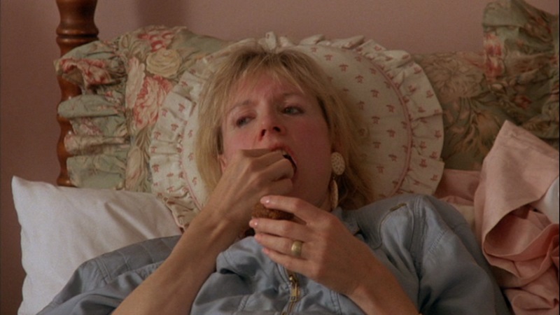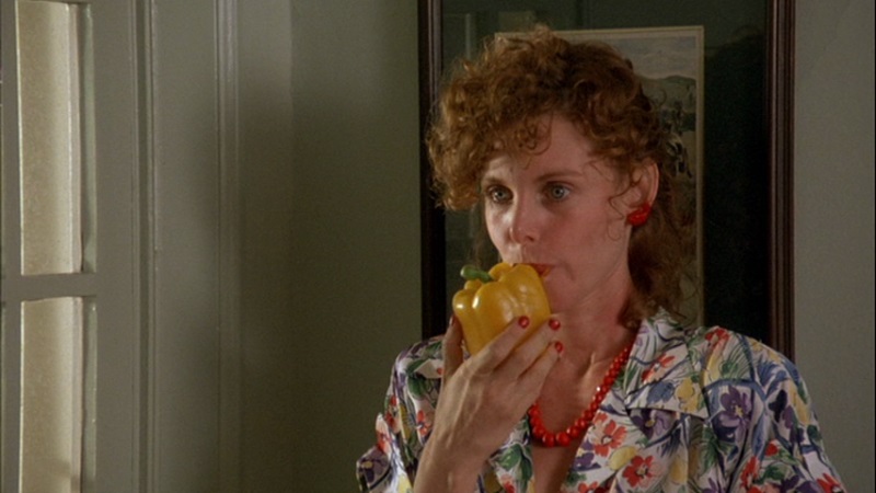 Dated in contemporary terms, EATING was an early film to discuss eating disorders among women, a subject which would quickly find its way to television movies of the week and show subplots. A group of female family, friends, and friends of friends on the joint birthday celebration of forty-year-old middle-class housewife Helene (Lisa Richards, SILENT NIGHT, BLOODY NIGHT), thirty-year-old Kate (Mary Crosby, TV's DALLAS) – married by uncertain about whether she is actually happy – and fifty-year-old Hollywood agent Sadie (Marlena Giovi, I DON'T BUY KISSES ANYMORE) who does not want her daughter to go into acting (and does not realize that one of her clients at the party is planning to leave her for someone younger and more aggressive). Also in attendance – inspiring much envy and contempt with her topless sunbathing – is Martine (Nelly Alard, L'APPARTEMENT), with whose parents Helene and her husband stayed with on their honeymoon in France, who is making a documentary for French television as a way of exploring her own relationship with food; and the documentary filmmaking scenes provide more commentary from the women who alternately see food as a replacement for love (and sex) or a means of controlling their bodies (or being controlled). As the evening wears on, Helene's self-doubt about her relationship with her husband takes a back seat to testimonials showing how attitudes towards food are developed out of good and bad (sometimes devastating) experiences. The tragic Gwen Welles (CALIFORNIA SPLIT) plays a variation of the trouble-making, self-loathing she essayed in Jaglom's NEW YEAR'S DAY), and her final scene with Crosby has the kind of intensity one wishes was present in the rest of the film. Frances Bergen (THE STAR CHAMBER) gives a touching performance as Helene's mother (probably the most relatable character to male viewers with her incredulous reactions to some of the other womens' fixations on food), and the large supporting cast includes an appearance Toni Basil (GREASER'S PALACE) as one of Sadie's clients (although not as herself), and Beth Grant (THE ARTIST) plays one of Helene's particularly guilt-ridden guests. |