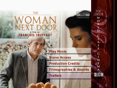 Supplements replicate some of what was on the mk2 DVD with the Toubiana intro, a commentary by Veronique Silver - French with optional English subtitles, 25-minutes of Fanny Ardent and Gérard Depardieu commenting on a few scenes from The Woman Next Door and a trailer.