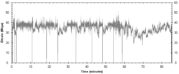 NOTE: The Vertical axis represents the bits transferred per second. The Horizontal is the time in minutes. |