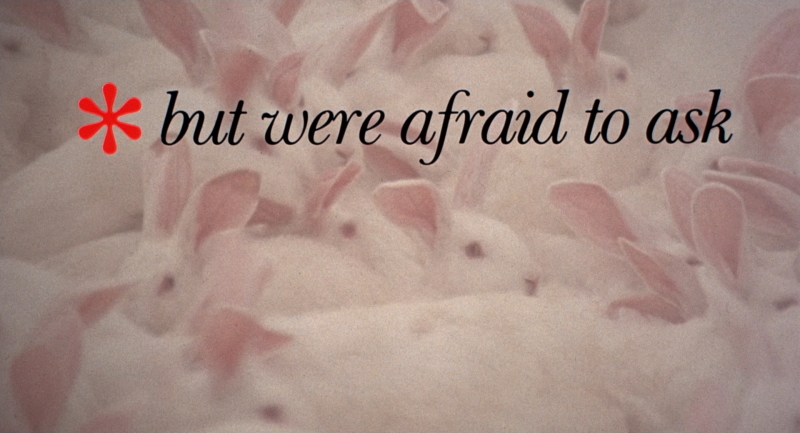 The Film: Woody Allen's in-name-only adaptation of the once notorious sexual reference guide by Dr. David Reuben contains seven episodes based on "helpful" questions answered in the book. In "Do Aphrodisiacs Work?", Allen appears as a court jester who uses a love potion to spark the erotic interests of the Queen (Lynn Redgrave). "What Is Sodomy?" stars Gene Wilder as a doctor who throws away his marriage, career, and position in the community when he falls madly in love with an Armenian sheep named Daisy. "Why Do Some Women Have Trouble Reaching Orgasm?" is a parody of stylish Italian films of the '60s in which a slick playboy (Woody Allen) discovers his wife (Louise Lasser) can climax only when they make love in public places. In "Are Transvestites Homosexuals?," Sam (Lou Jacobi) has his little secret revealed at a most inopportune moment. "What Are Sex Researchers Actually Accomplishing?" features John Carradine in a great parody of his mad-scientist roles as Dr. Bernardo, whose research into human sexuality has led to a fearsome mutation -- a 50-foot tall female breast! "What Are Sexual Perversions?" takes us to a broadcast of the popular game show What's My Perversion?, in which Jack Barry leads a panel of celebrities (including Regis Philbin and Robert Q. Lewis) in guessing the erotic obsessions of their guests. And "What Happens During Ejaculation?" takes the audience inside the body of a man in the throes of passion; The Brain (Tony Randall) guides the body's functions, with the help of his assistant (Burt Reynolds), while Allen plays a nervous sperm cell not sure if he can make the big jump. While the quality of the episodes is uneven, the best rank with the funniest moments of Allen's career, especially Gene Wilder's touching romance with the sheep ("I think we can make this work, Daisy") and the final sequence inside the male body ("What if he's only masturbating? I'll end up on the ceiling somewhere!") Excerpt from MRQE located HERESeven sketches parodying a sex manual, in which Allen - before trying to change his name to Fellini-Bergman - strung together 'every funny idea I've ever had about sex, including several that led to my own divorce'. Some dross, but the parodies of Antonioni (all angst and alienation of a wife who can achieve orgasm only in public places) and of TV panel games ('What's My Perversion?') are brilliantly accurate and very funny. Best of all is the sci-fi parody entitled 'What Happens During Ejaculation?', which has the miniaturised scientists of Fantastic Voyage inside a life-sized male robot, busily checking data and providing the necessary bodily reactions by hand-turned winch as the robot wines, dines and seduces a real-life woman. Allen achieves his finest hour here, dressed as one of the sperm, poised anxiously with parachute by the escape hatch and crying 'Gung ho!' as he jumps, 'We're gonna make babies!' Excerpt from TimeOut located HEREImage : NOTE: The below Blu-ray captures were taken directly from the Blu-ray disc. Everything You Always Wanted to Know About Sex * But Were Afraid to Ask gets an impressive transfer to Blu-ray from Arrow Academy in the UK. It's dual-layered with a max'ed out bitrate for the 1.5 hour feature. It's not particularly dynamic, but neither were the film's original visuals in terms of color depth, crispness but there is no noise in the darker sequences. The 1080P supports solid contrast exhibiting healthy black levels and some minor depth in the 1.85:1 frame. It's clean showcasing some pleasing detail in the close-ups with only a very infrequent speckle noticeable. The film's textures are well supported and there are really no flaws with the rendering. This Blu-ray probably looks very much like the theatrical version of the film Everything You Always Wanted to Know About Sex * But Were Afraid to Ask. I doubt it can look more accurate unless it goes 4K one day.