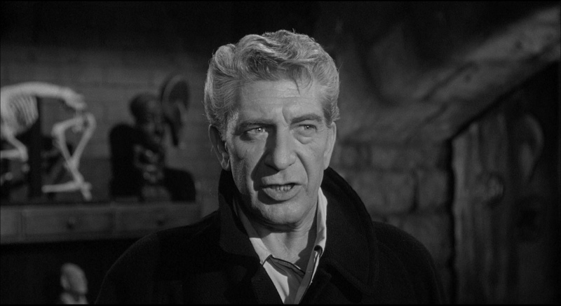The Film: An angry head-shrinker (not a psychiatrist) puts a curse upon a family of white traders in this well-wrought low-budget horror film. It must have been a doozy for 200 years later it is still going strong. The story opens as the eldest male descendant of the cursed Drake family finds himself on the brink of losing his head at the hands of a strange witch doctor and his spooky-looking servant. Fortunately his daughter and a detective show up in time to save his noggin from a fate too horrible to disclose here. Excerpt from B+N located HEREThe film is meant to be a moral horror. It begins with a quote from Shakespeare's Julius Caesar: "The evil that men do lives after them." It then goes into a yarn about Professor Jonathan Drake, a voodoo scholar. A long time ago, an ancestor of his massacred an African tribe, one that, unfortunately for the line of Drakes, were adept practicers of voodoo. The professor believes that there is a curse on his family, as all of the males since then have died suddenly and mysteriously, though they have been written off by the doctor as heart failure each time, a hereditary problem. Excerpt from Classic-Horror.com located HEREImage : NOTE: The below Blu-ray captures were taken directly from the Blu-ray disc. The Four Skulls of Jonathan Drake looks very good on Blu-ray from Shout! Factory. This is single-layered with a max'ed bitrate. Contrast is well-layered and there is frequent depth. It's clean in the 1.85:1 aspect ratio. There are no flaws - the video is consistent and produces a very pleasing 1080P visual presentation.