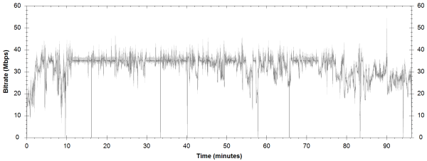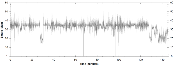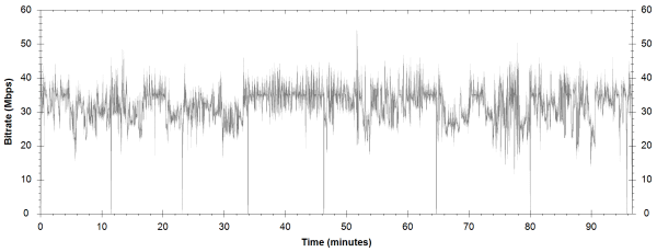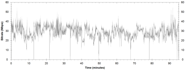 NOTE: The Vertical axis represents the bits transferred per second. The Horizontal is the time in minutes. |