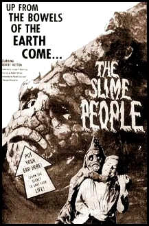 arm scuttling across the floor. The Slime People (1963) is an ultra-cheap black-and-white creature feature written, directed by, and starring Robert Hutton that captures the era’s nuclear-anxiety B-movie spirit with a heavy dose of fog. Awakened and driven from their underground lair by atomic tests, a race of slimy, reptilian subterranean monsters invades a nearly deserted Los Angeles, erecting a mysterious “solidified fog” dome that seals off the city and drops the temperature as they stalk survivors with spears. A small group—including a pilot (Hutton), a professor, and his daughters—must band together in the eerie, empty streets to fight back and destroy the creatures’ fog-generating machine before humanity is wiped out. Infamous for its rubber-suited monsters, excessive smoke that often obscures everything, repetitive score, and talky script, it remains a cult favorite for fans of pure 1960s schlock and sidewalk-elevator monster entrances. |