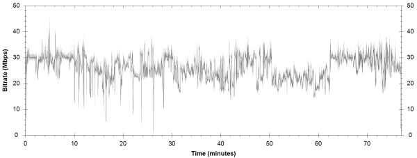 NOTE: The Vertical axis represents the bits transferred per second. The Horizontal is the time in minutes. |