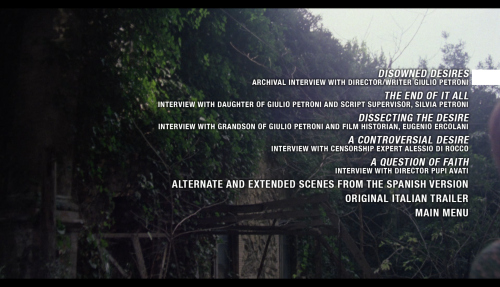 Edition Details: Obscene Desire extras: • Commentary track with film historians Eugenio Ercolani and Troy Howarth • Disowned Desires (14:36) - an archival interview with director/writer Giulio Petroni • The End of it All (21:20) - an interview with daughter of Giulio Petroni and script supervisor, Silvia Petroni • Dissecting the Desire (44:07) - an interview with grandson of Giulio Petroni and film historian, Eugenio Ercolani • A Controversial Desire (20:33) - an interview with censorship expert Alessio Di Rocco • A Question of Faith (11:38) - an interview with director Pupi Avati • Alternate and extended scenes from the Spanish version (13:26) • Original Italian trailer (2:57) The Bloodstained Lawn extras: • Commentary track with film historian and critic Rachael Nisbet • Bloodstained Piacenza (24:25) - an interview with film historian Enzo Latronico • Odd Choices (16:15) - an interview with filmmaker/film historian Luca Rea Death Falls Lightly extras: • Commentary track with film historians Eugenio Ercolani and Troy Howarth • Anything Goes (15:39) - an interview with actor Alessandro Perrella • That Kind of Film (11:25) - an interview with filmmaker/film historian Luca Rea • Where Death Landed (5:31) - a then and now location featurette