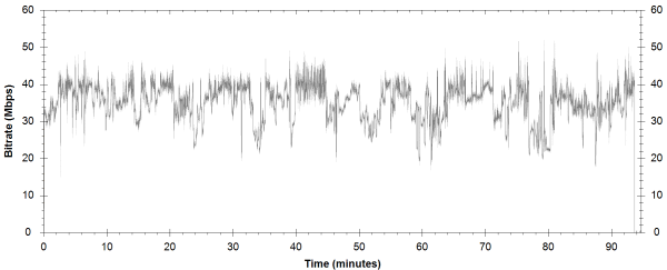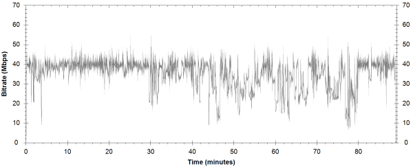 NOTE: The Vertical axis represents the bits transferred per second. The Horizontal is the time in minutes. |