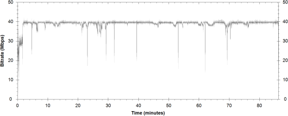 NOTE: The Vertical axis represents the bits transferred per second. The Horizontal is the time in minutes. |