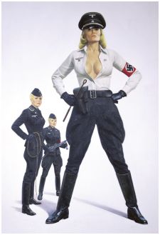 blonde hair, and SS uniform as fetish wear - while female prisoners are