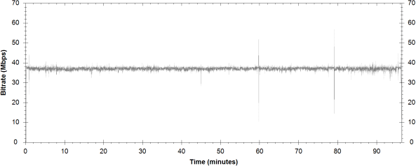 NOTE: The Vertical axis represents the bits transferred per second. The Horizontal is the time in minutes. |