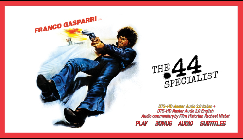 The .44 Specialist (aka Mark Strikes Again) is a high-octane cop thriller from director Stelvio Massi (Magnum Cop). Inspector Mark Patti (Franco Gasparri) is assigned to infiltrate a group of radicals, working in concert with shady US agent Altman (John Saxon, Enter the Dragon, A Nightmare on Elm Street). Mark is brought into the terrorist circle of Paul (John Steiner, Tenebrae) and Olga (Marcella Michelangeli, The Big Racket), and chaos erupts. The undercover cop discovers uncomfortable truths as he gets embroiled in their acts of political violence. ***
