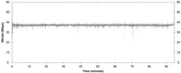 1.85 :1 1080P Dual-layered Blu-rayDisc Size: 31,801,119,671 bytesFeature: 30,440,435,712 bytes Video Bitrate: 37.24 MbpsCodec: MPEG-4 AVC Video