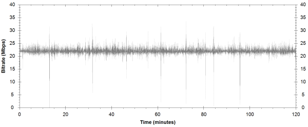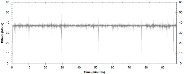 NOTE: The Vertical axis represents the bits transferred per second. The Horizontal is the time in minutes. |