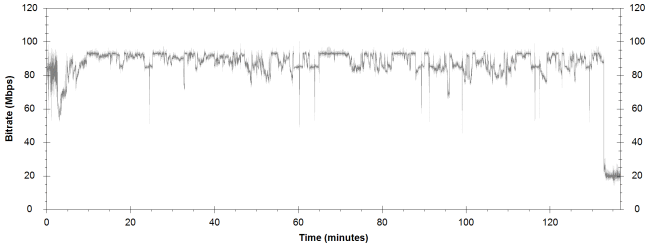 4K UHD Disc Size: 98,106,908,326 bytes Feature: 94,448,441,664 bytes Video Bitrate: 85.95 Mbps Codec: HEVC Video |