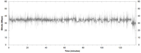 NOTE: The Vertical axis represents the bits transferred per second. The Horizontal is the time in minutes. |