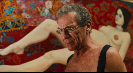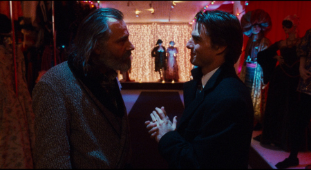 surrealism in scenes, like the dimly lit orgy or the amber-hued interiors,
