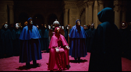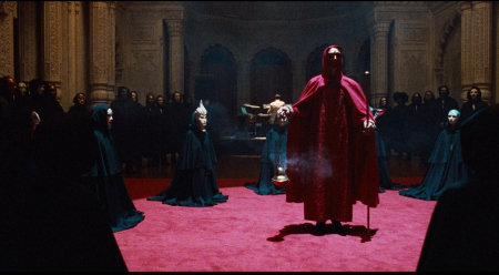 against inky blacks, and the wide color gamut intensifies the symbolic