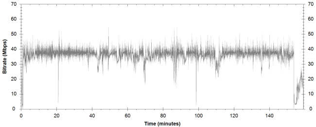 NOTE: The Vertical axis represents the bits transferred per second. The Horizontal is the time in minutes. |