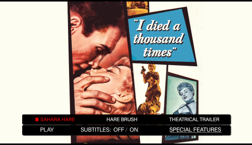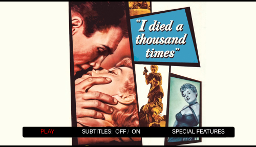 Based on the Humphrey Bogart star-making classic High Sierra, I Died a Thousand Times brings the enveloping expanse of CinemaScope and a new color restoration to the gritty saga of old-timer Roy Mad Dog Earle (Jack Palance), just released from prison and leading nervous small-timers (Lee Marvin and Earl Holliman) on a resort heist fated not to go like clockwork. Soft-hearted Earle is so drawn to a crippled girl (Lori Nelson) that he pays for curative operation. But when things go wrong, it's a brassy dime-a-dance girl (Shelley Winters) who stands beside him. Veterans Lon Chaney and Mae Clarke and newcomers Dennis Hopper and Richard Davalos are featured in the top-flight cast. With a taut script by High Sierra novelist W.R. Burnett and a heart-pounding manhunt finale, I Died a Thousand Times is a rousing, memorable thriller. Newly remastered in High Definition for this Blu-ray release from 4K scans of the original camera negative. ***