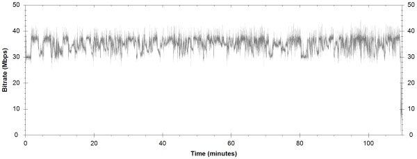 NOTE: The Vertical axis represents the bits transferred per second. The Horizontal is the time in minutes. |