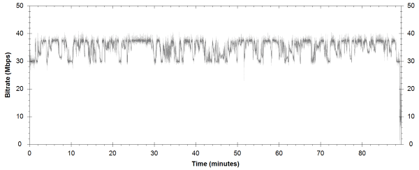 NOTE: The Vertical axis represents the bits transferred per second. The Horizontal is the time in minutes. |