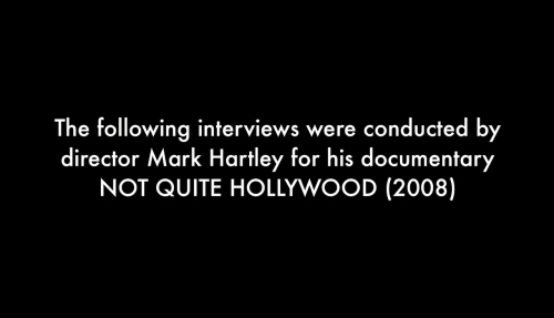 Edition Details: Extended NOT QUITE HOLLYWOOD interviews with cast members Steve Bisley, Arna-Marie Winchester, Director Ian Barry and Associate Producer Ross Matthews (1:04:11) Thrills & Nuclear Spills Featurette (32:57) The Sparks Obituary featurette (24:51) Deleted and Extended Scenes (8:36) The Man at the Edge of the Freeway: Early Cut (1:33:57)