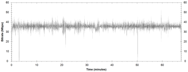 NOTE: The Vertical axis represents the bits transferred per second. The Horizontal is the time in minutes. |