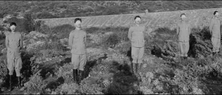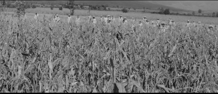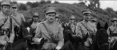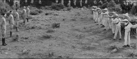by abstract imagery like hanged rebels and horizon-staring futility.