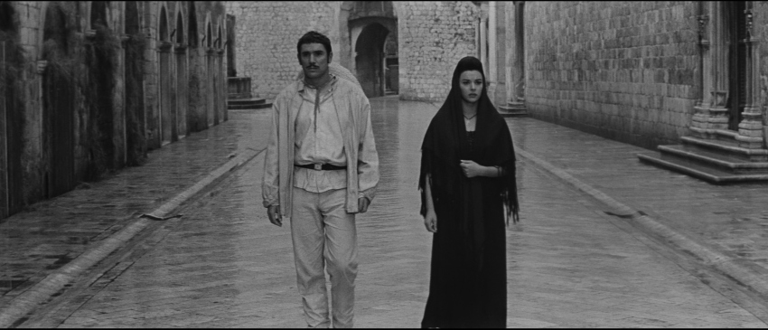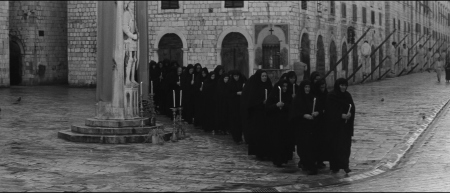 employs atmospheric black-and-white cinematography and dramatic scoring